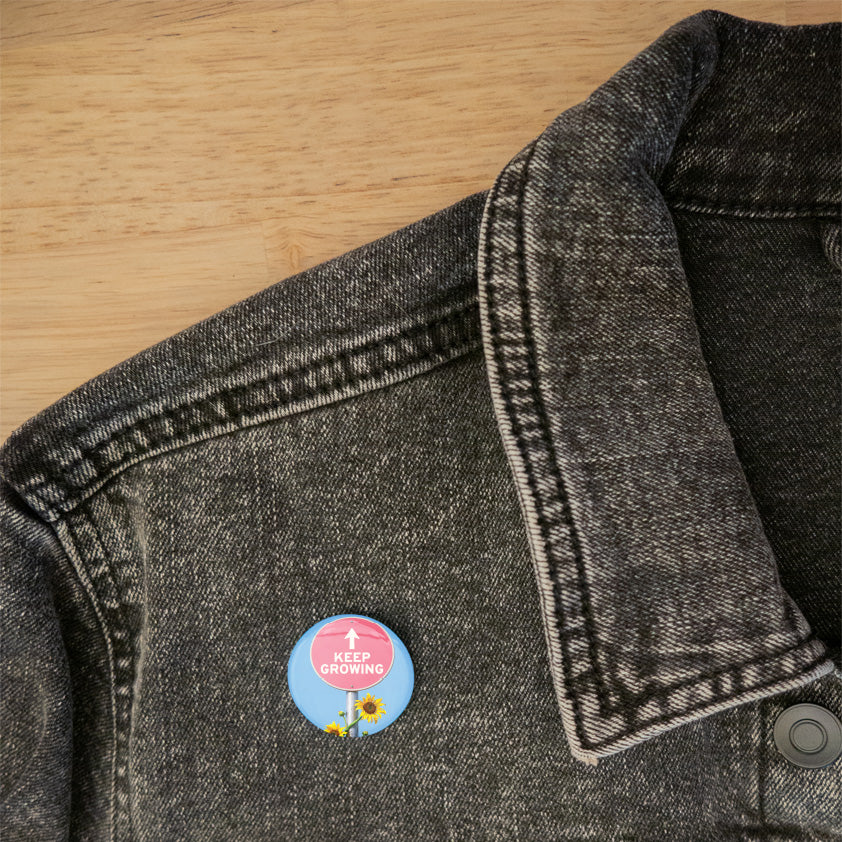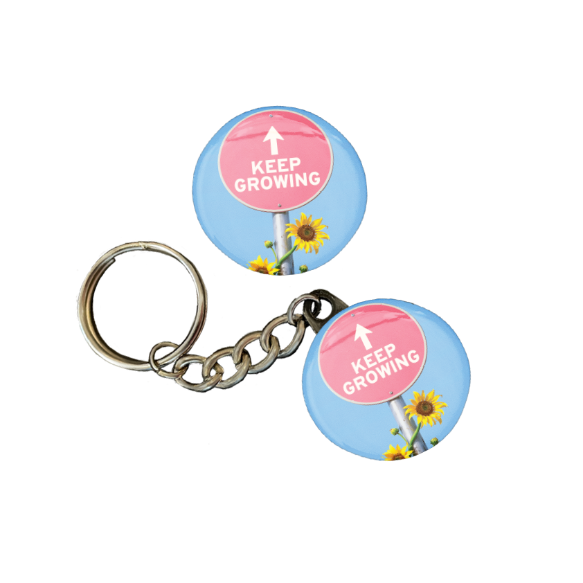 These 1.25 inch round pins, magnets and key chains add a pop of color and personality to anything from your keys to your jacket.