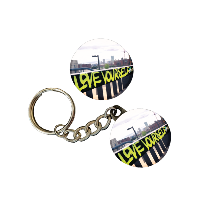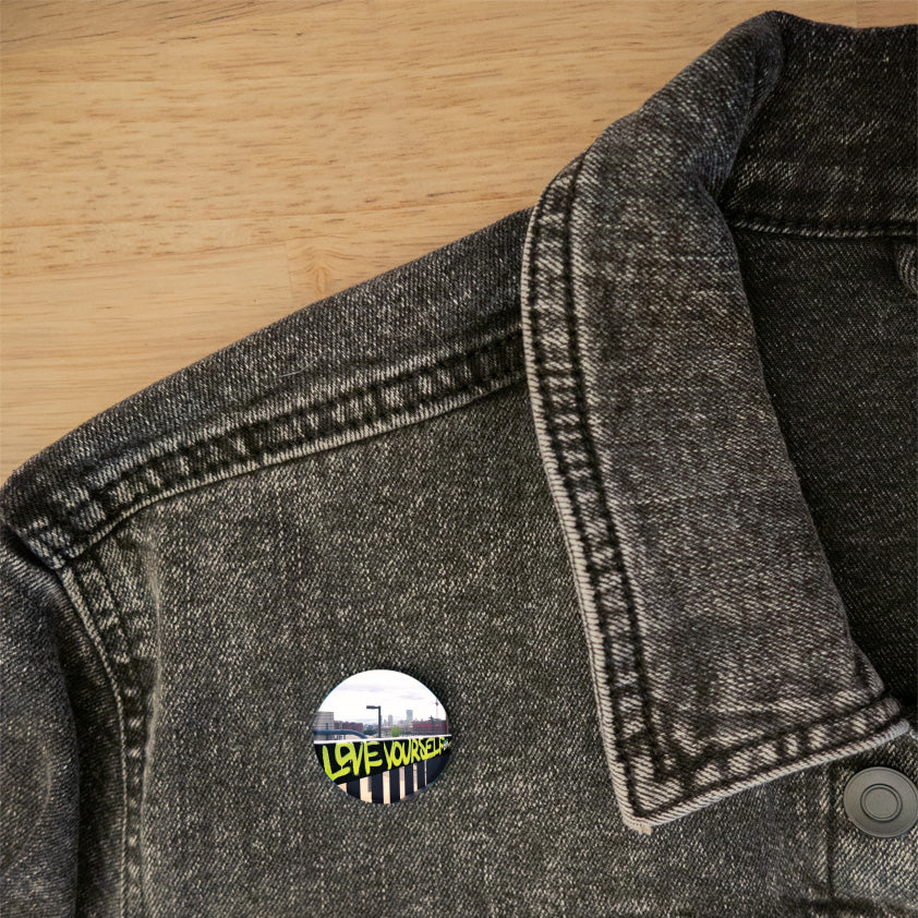 These 1.25 inch round pins, magnets and key chains add a pop of color and personality to anything from your keys to your jacket.